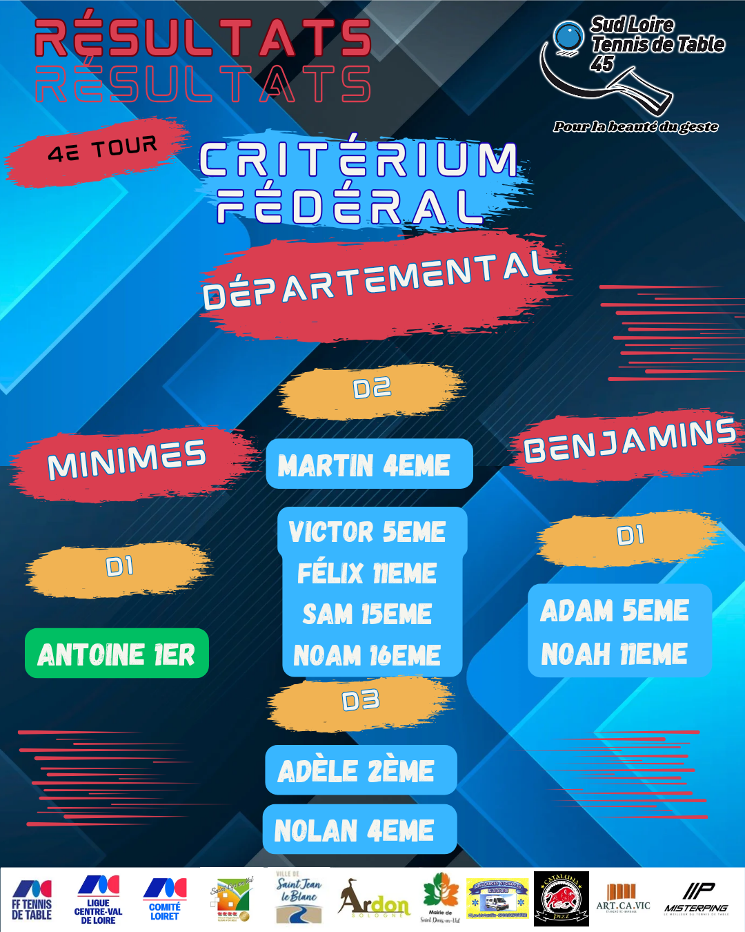 Résultats du week-end !
