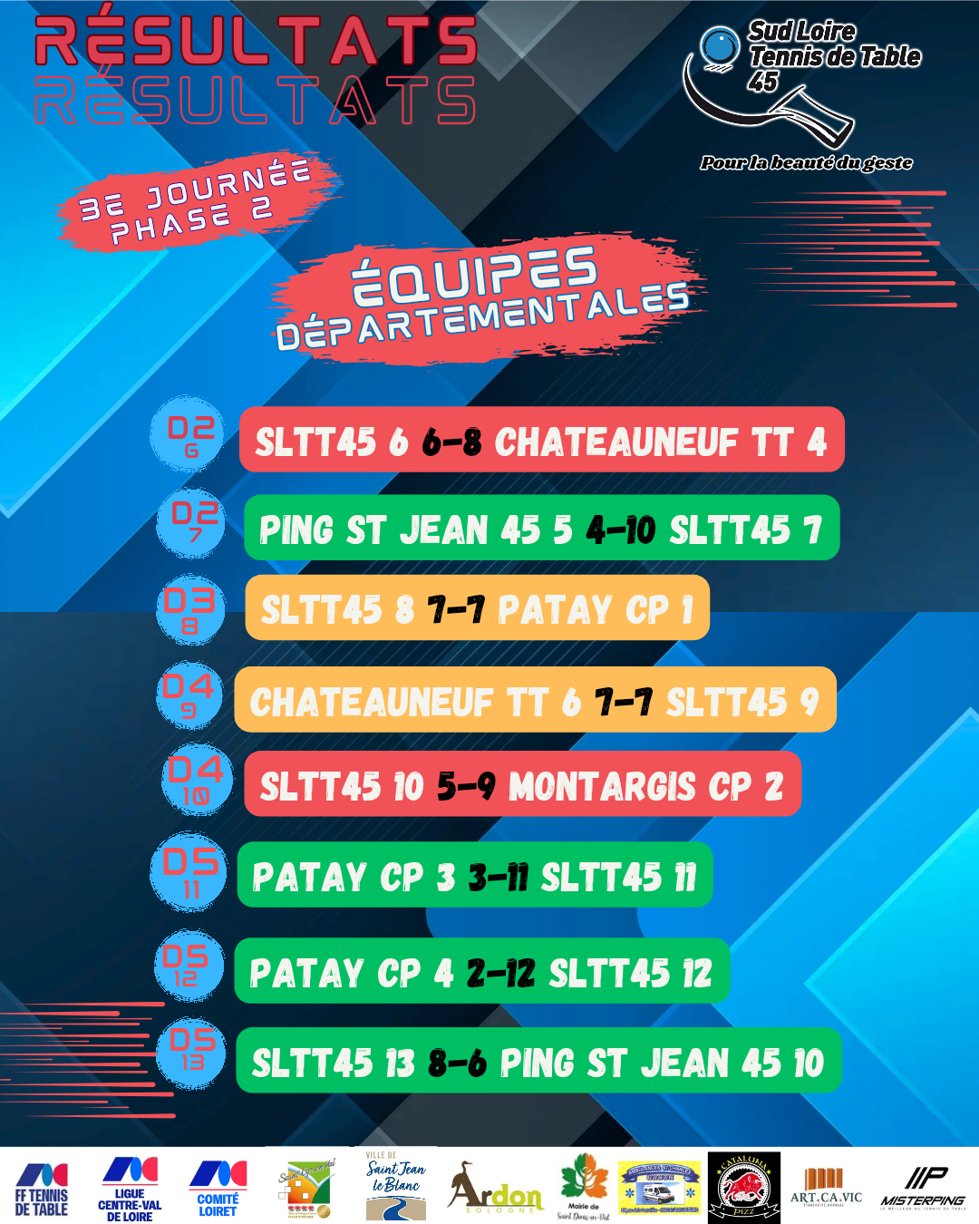 Résultats des équipes départementales